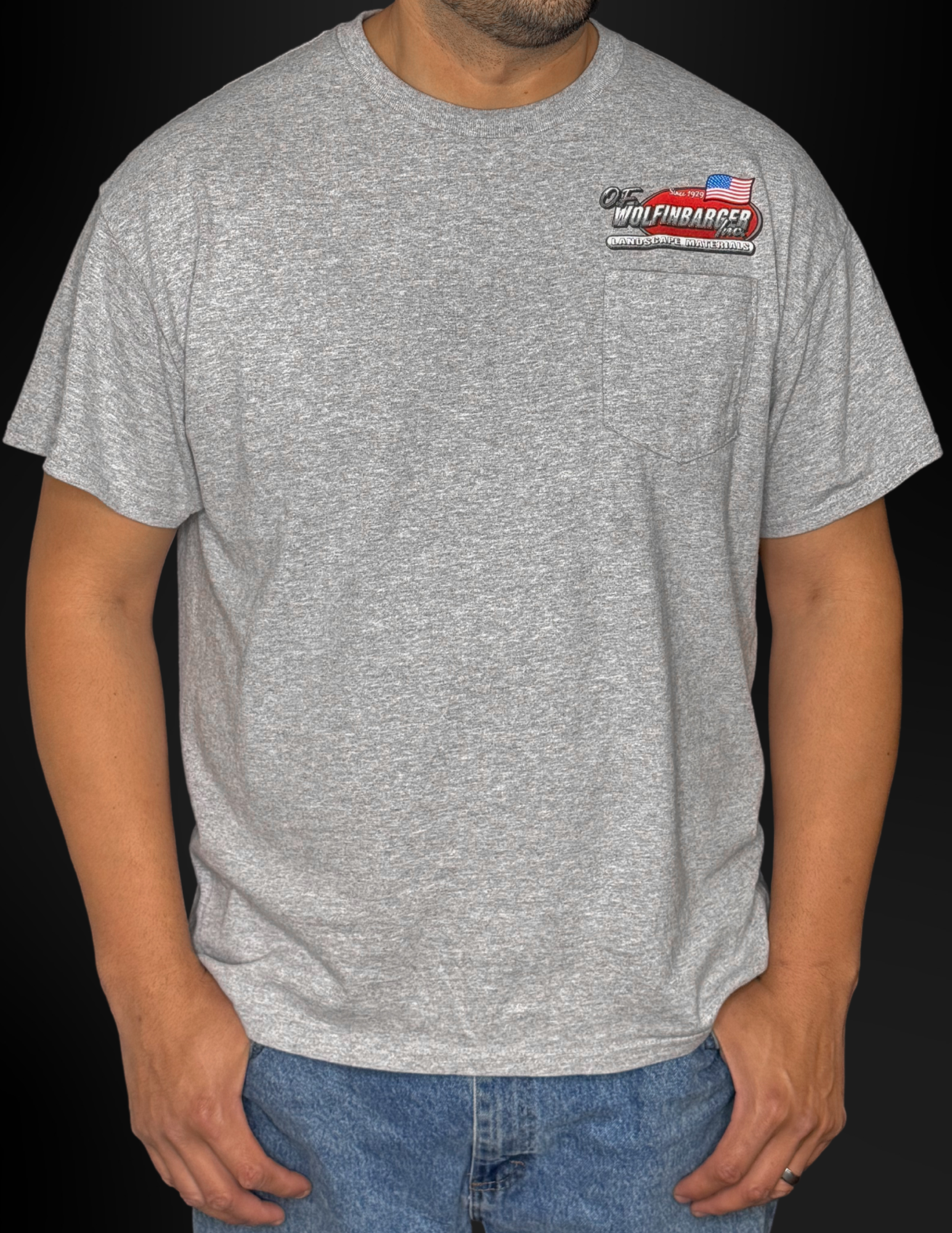Introducing the O.F. Wolfinbarger Gray T-Shirt. Show your support for our small business with this uni-sex t-shirt from our family-owned company. Made with high-quality material and featuring our logo, this shirt is perfect for representing your favorite landscape supply store. Join the community and wear our Gray t-shirt with pride. Also available in Red and Black.